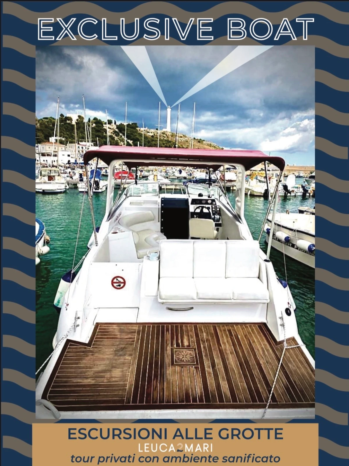 Tour dedicato alla visita completa delle grotte di Leuca, prenotando l’imbarcazione in esclusiva senza nessuno a bordo per: